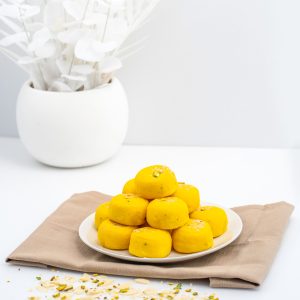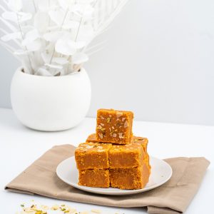 Ingredients: Gram flour, Ghee, Sugar, Milk Powder, Almonds, Pistachio, Sev, Cardamom, Nutmeg.